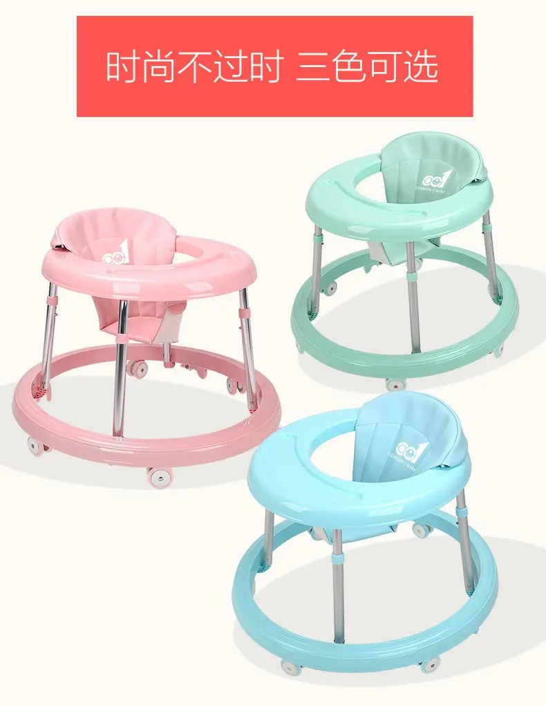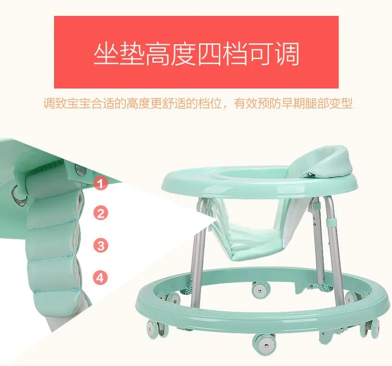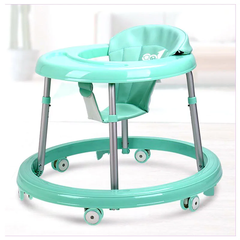 BEST Stainless Steel Baby Walker with Rubber Wheels 7-level Adjustment Child Anti-rollover Learning Walk